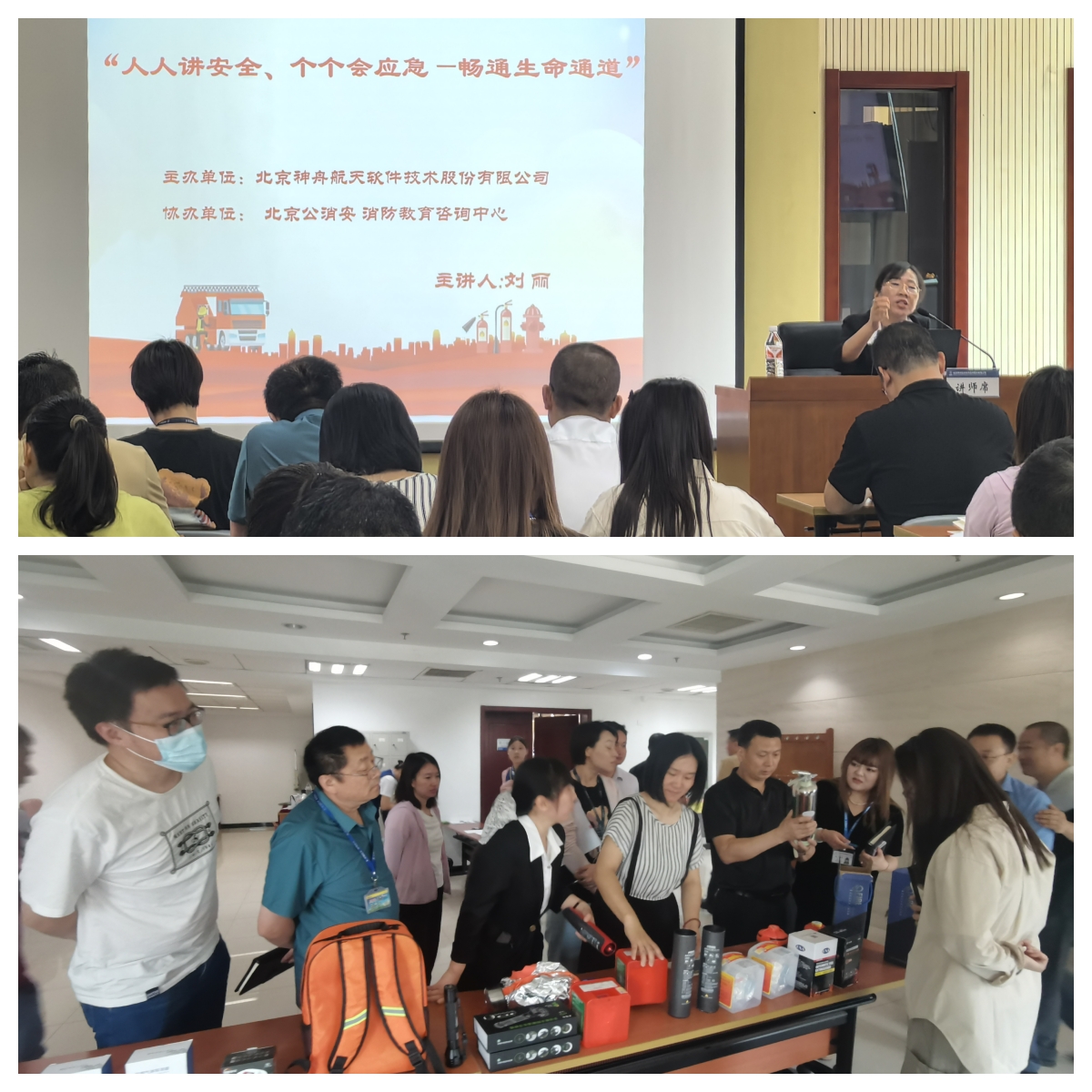 北京公消安消防教育咨詢中心宣傳辦主任劉麗為神軟公司做了安全生產(chǎn)知識專題講座,講解了火災(zāi)自防自救知識,介紹了行政辦公樓、食堂、檔案室等消防重點場所注意事項和防火要求,展示了各類最新消防器材。